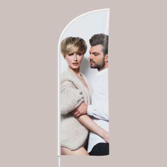 Een beachflag is een echte eyecatcher voor de deur van je salon. Je kapsalon valt in één oogopslag op. Kies voor een standaard kapsalon beachvlag of laat deze personaliseren met je logo en in de stijl van jouw salon.