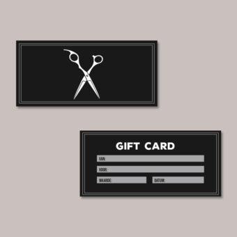 Bied je klanten een tegoedbon van je salon aan met deze toffe cadeaubonnen. Maak een keuze uit de standaard kappers cadeaubonnen of laat er een maken geheel naar de stijl van je kapsalon. Ook is er de mogelijkheid om je logo op de cadeaubon te laten zetten.