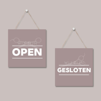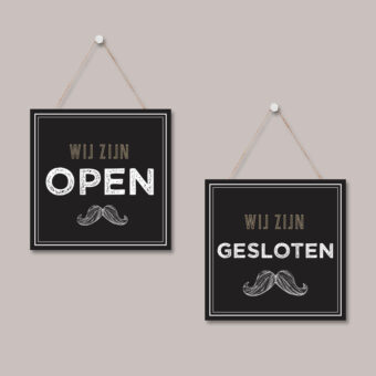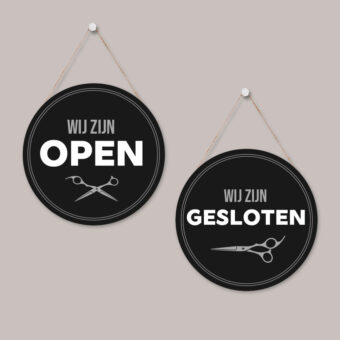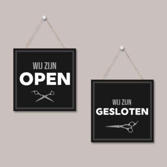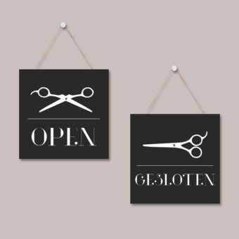 Laat zien dat je salon open of gesloten is met een leuk open/gesloten bordje. Maak een keuze uit de standaard kappers open/gesloten bordjes of laat er een maken geheel naar de stijl van je kapsalon. Ook is er de mogelijkheid om je logo op de bordjes te laten zetten.
