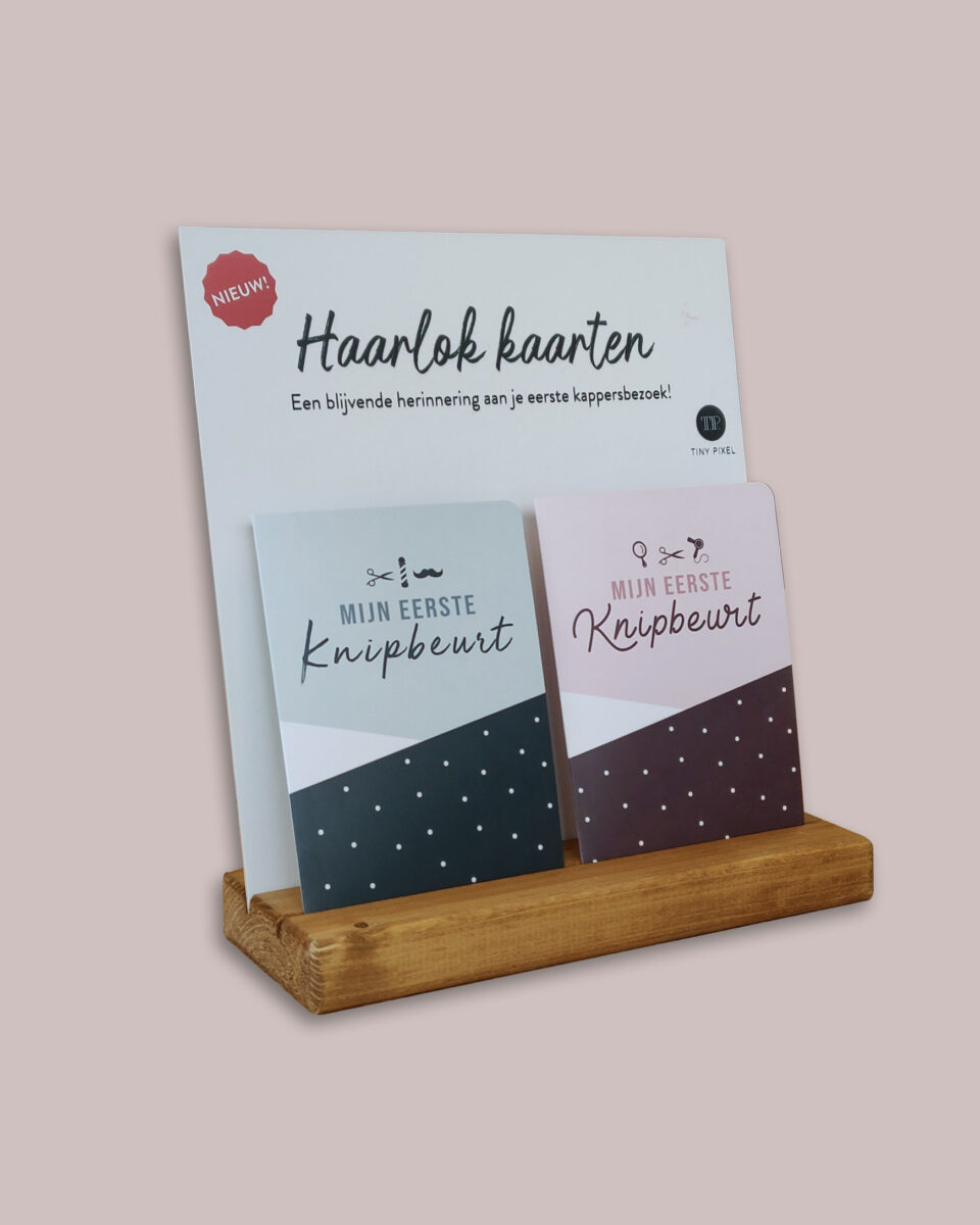 Houder voor de haarlok kaarten. Laat de haarlok kaarten mooi zien in je salon op deze kaarthouder.