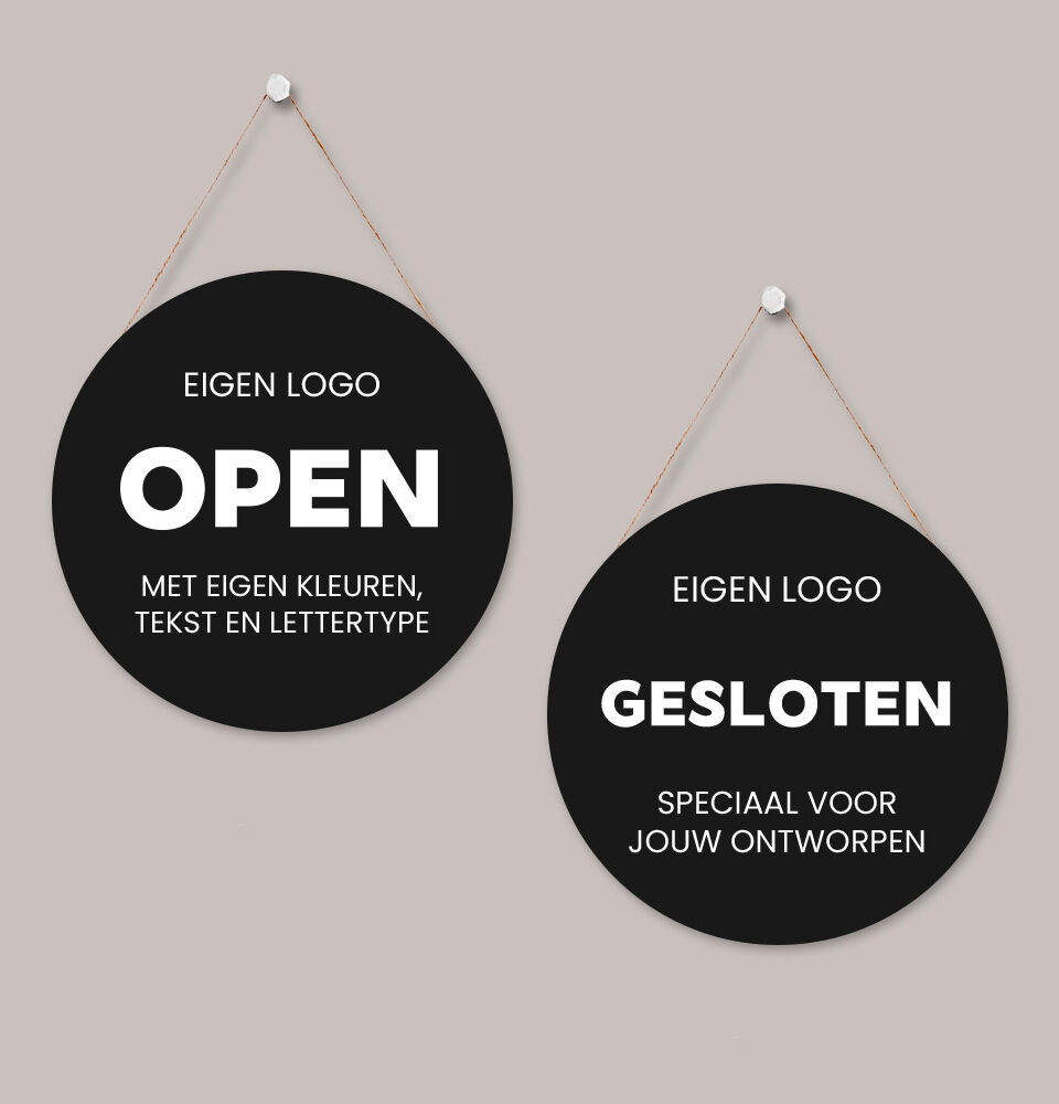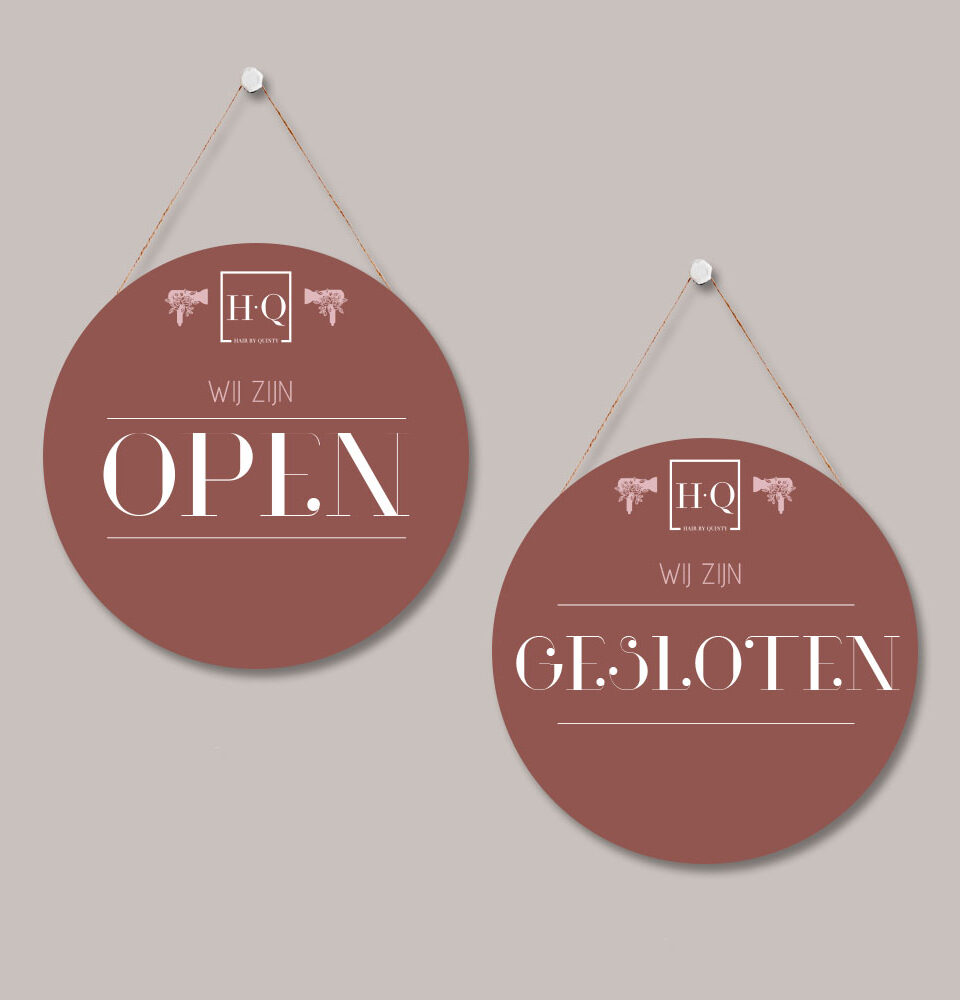 Dit open/gesloten bordje wordt speciaal voor jou ontworpen in de huisstijl van jouw salon. Nadat je de bestelling geplaatst hebt, krijg je van ons een mail met de overige informatie. Nadat je hier op hebt gereageerd, gaan wij voor jou aan de slag. Binnen 3 werkdagen ontvang je een digitaal ontwerp. Na jouw bevestiging nemen we de bestelling in productie en wordt deze naar je opgestuurd.