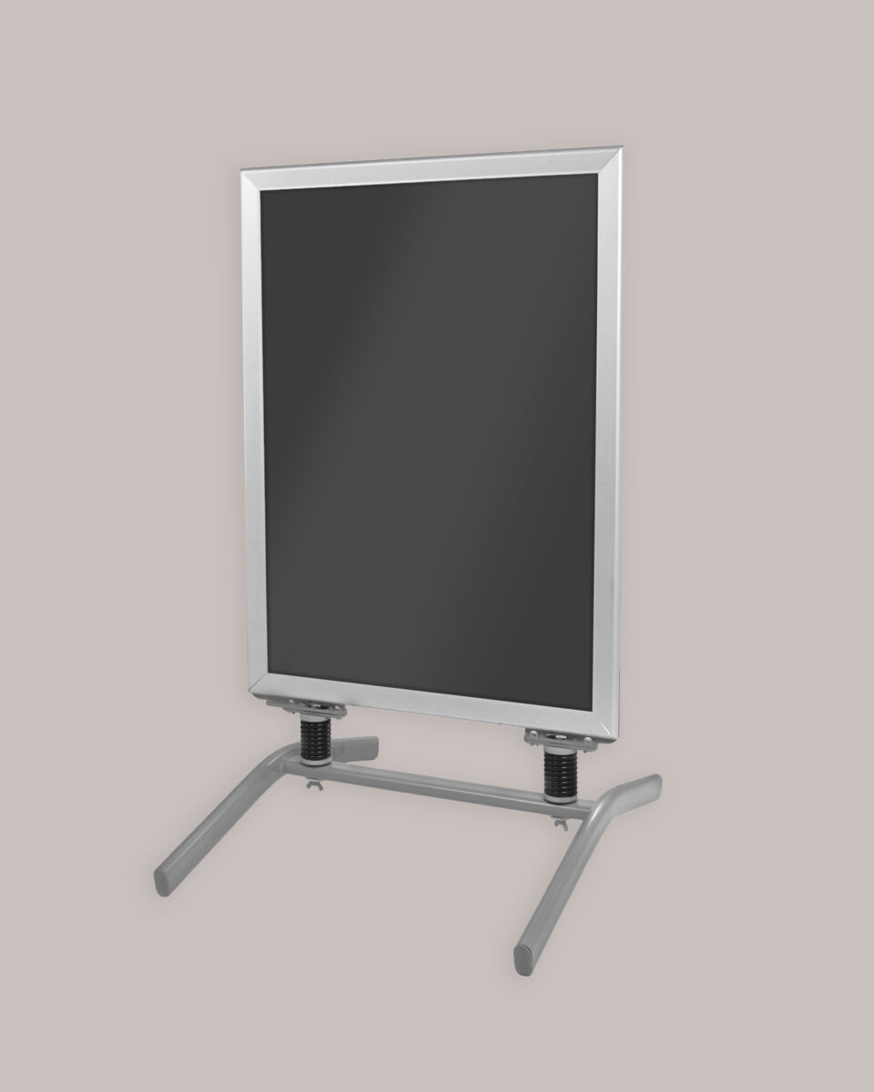 Dit stoepbord is waterproof en bestand tegen wind en regen. De veren zorgen dat het bord in de wind kan meebewegen. De kliklijsten van het stoepbord hebben ronde hoeken. Hierdoor is het verwisselen van de posters eenvoudig en veilig.
