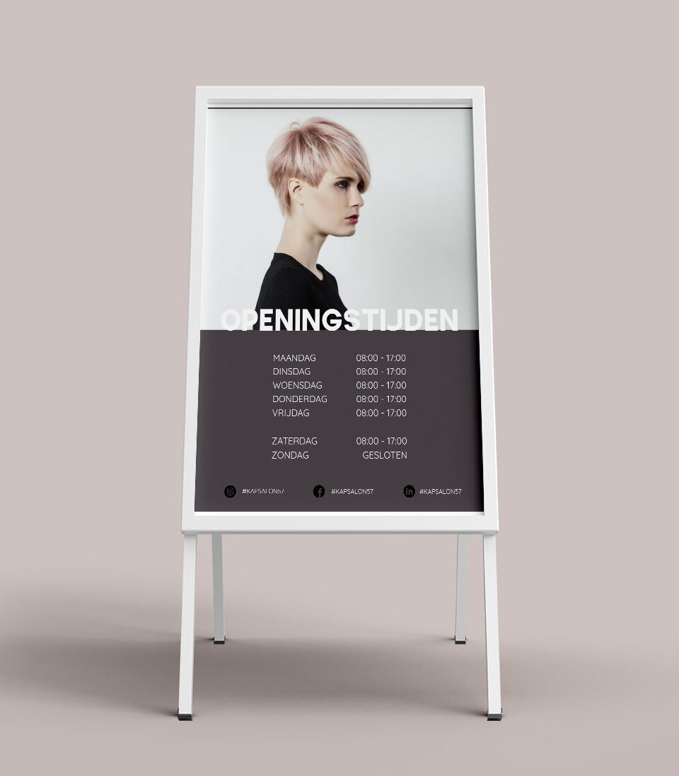 Wil je je eigen logo, tekst en/of afbeelding op de stoepbord poster? Voor maar €5,00 meer ontwerpen we een poster speciaal voor jou. Reageer op de orderbevestiging met jouw logo, tekst, kleur en/of afbeelding en wij gaan voor je aan de slag. Binnen 3 werkdagen ontvang je 3 digitale ontwerpen waar je uit kunt kiezen. Nadat je er één hebt uitgekozen, nemen we de bestelling in productie en wordt deze naar je opgestuurd.